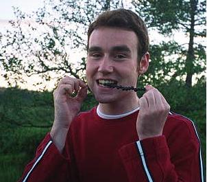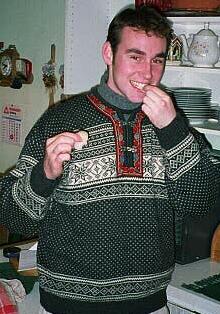 Me tasting my frist scallop raw in a traditional Norwegian sweater.