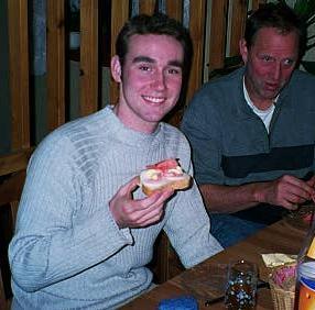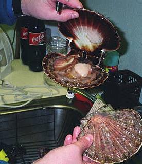 Jørn and I preparing my first taste of scallop.