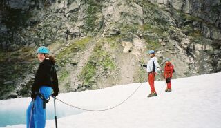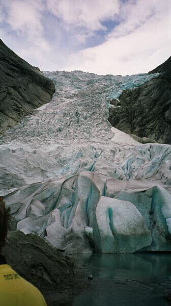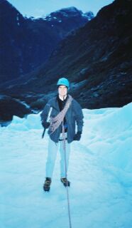This was another trip up to the glacier. Kari Ann and her boyfriend took Marita and I up to the glacier. Hiking up such a beautfil and peaceful piece of nature is something I will not soon forget. Here am I smiling for the camera. I was the last in the group, so I had to carry the ropes, and if the people before me should fall and slide down the glacier, it was my job to hold on to them... |