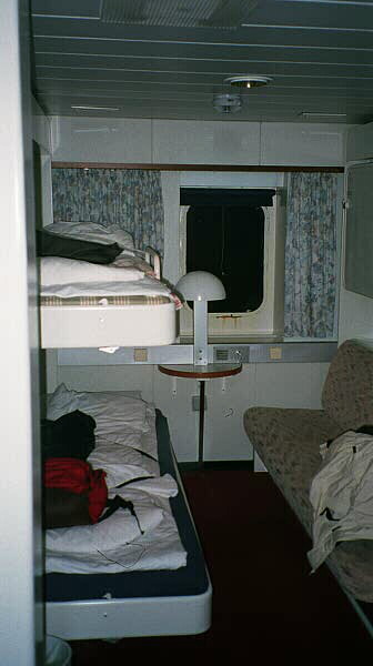 We rode nice ferries to and from Denmark. The ferries had just about everything; cafes, restaurants, dance bars, discos, duty-free shops, and cabins.