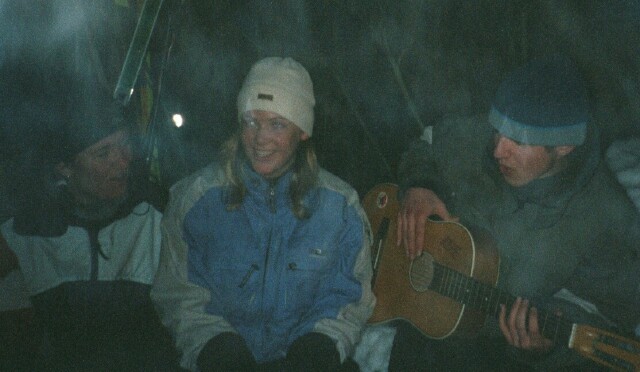 Since we slept in tents on the snow on this cold winter's day, we had to sit around the campfire at sing songs, mainly child tones!